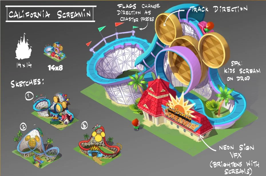 DISNEY MAGIC KINGDOM LEAD 2D ARTIST Designed and helped Art Direct Cinderella’s castle as well as the base for the map, and original rides.